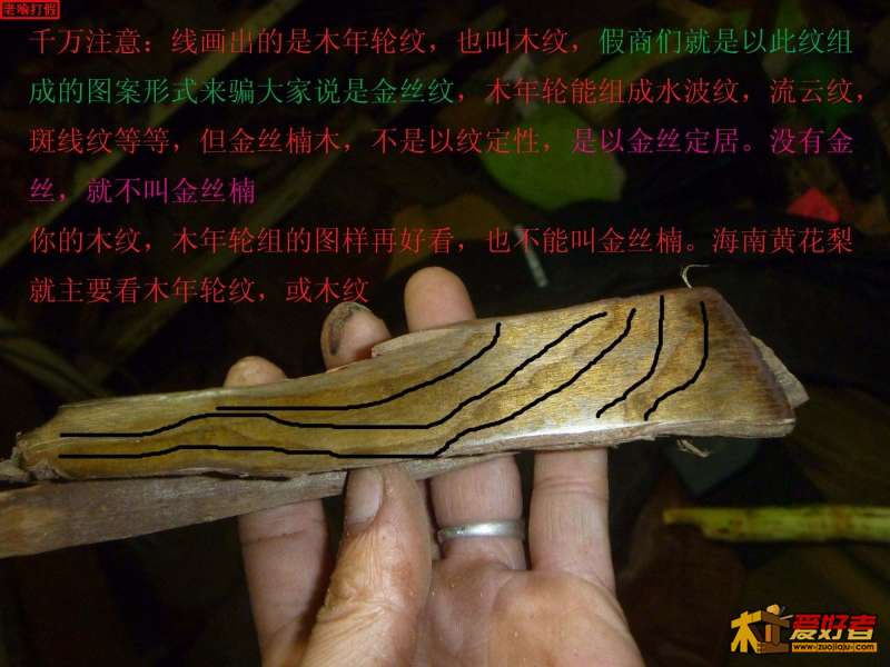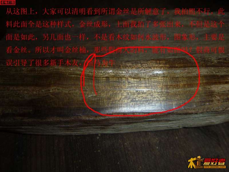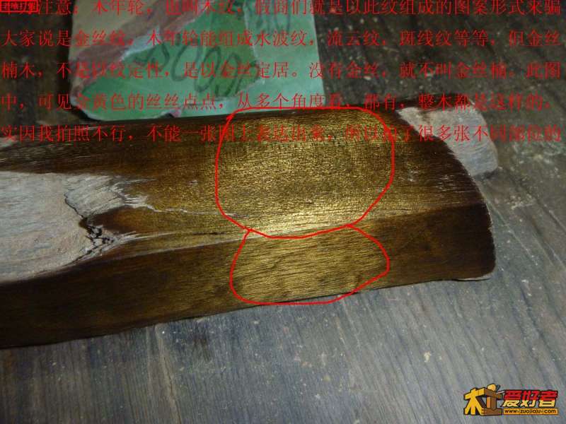 我开始发贴时就说了句粗话:金丝楠,别去看的,你就看是不是楠木,打磨出来是不是有金丝,所谓金丝,就是金黄色的一丝丝的木色纹,不是那种拍张全图或大图出个水纹,水波纹,山脉纹,浪纹,流水纹,图纹等等纹,是金碧辉煌的金色泽金丝纹.所以才叫金丝楠.先楠再金再丝.