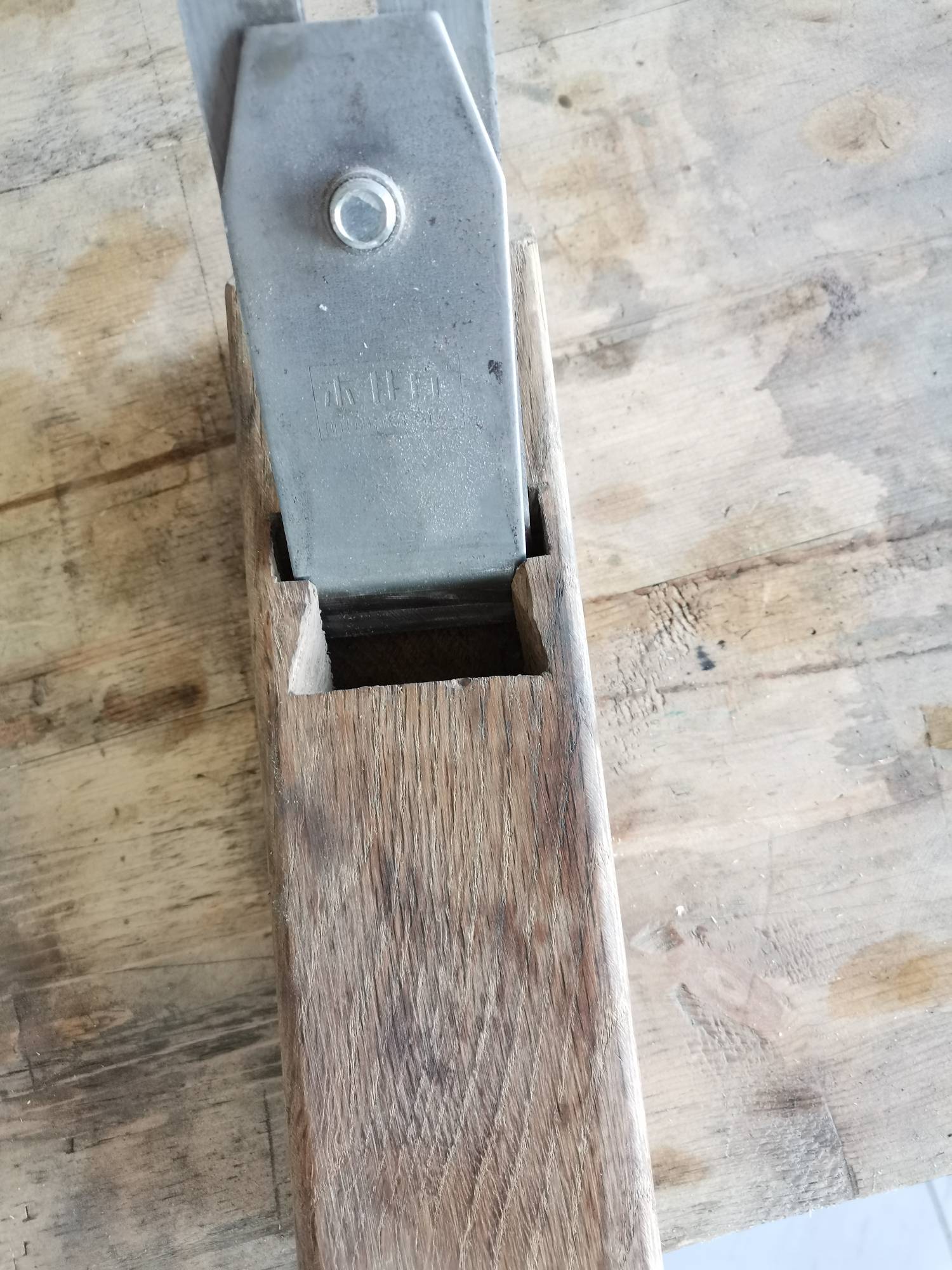 回老家捡了一个刨体,把刀和盖铁合一起放不进去,不知道这种是怎么安装的?是刀直接和木契一起固定的吗?请大神指点!谢谢8 X& n3 ]7 f, A9 R# u* m$ n