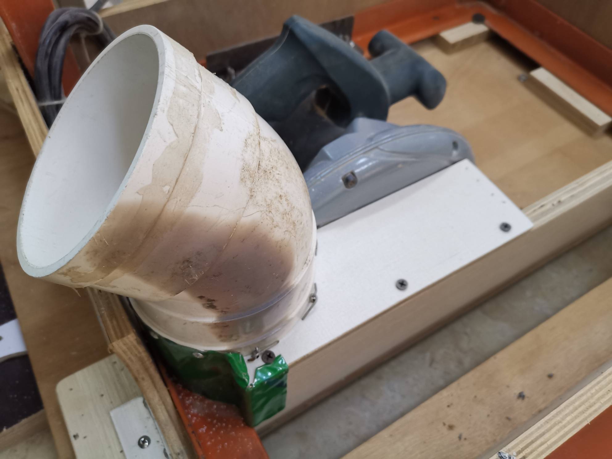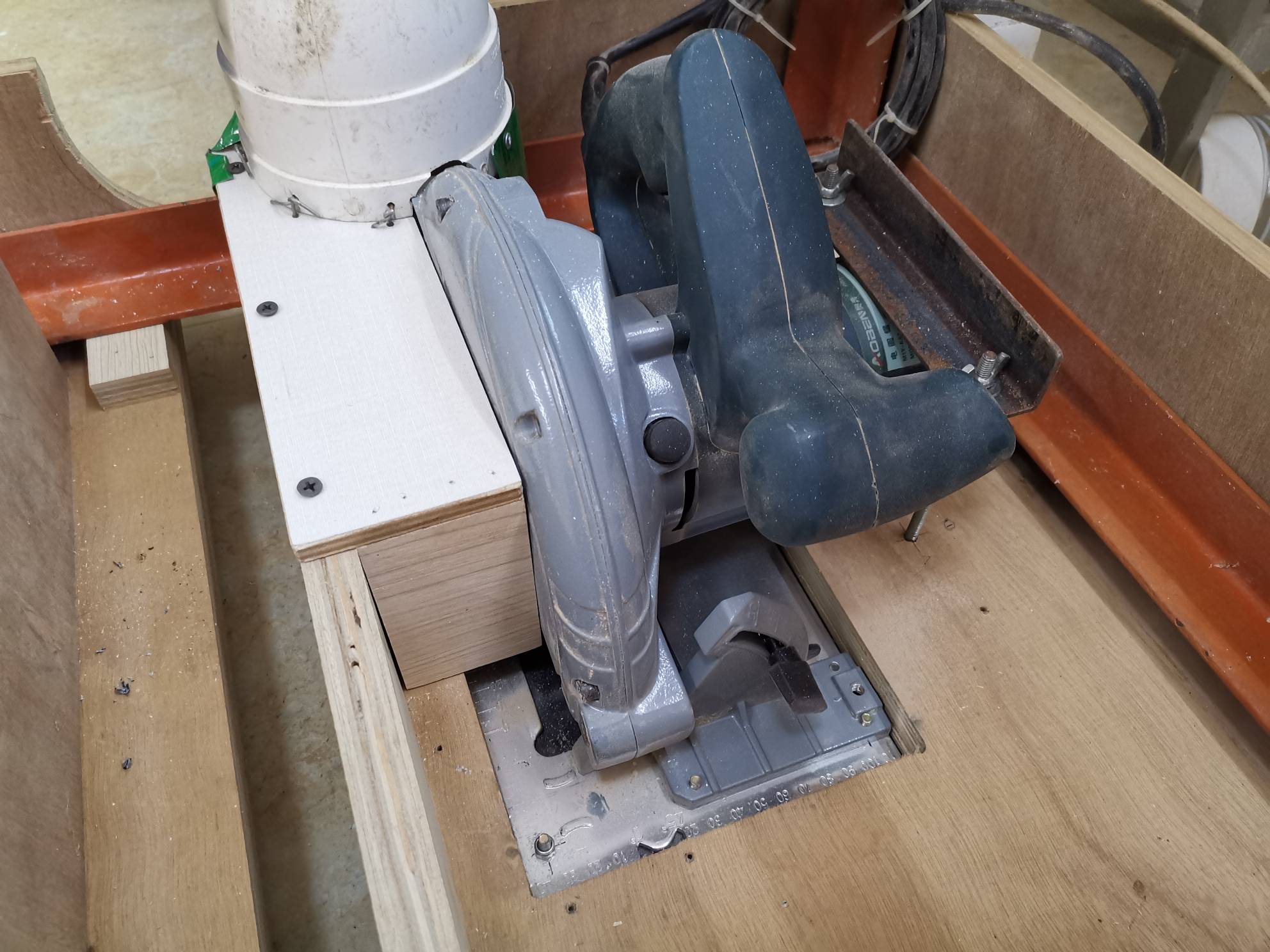 木由心生NO.1 发表于 2021-01-01 18:09 9 E# \: D- _: I0 f6 C: K2 X" x我也是倒装电圆锯,不过我的是用来开原木,吸尘也是我头疼的一个问题,我也装了一个吸尘器,大概能吸走50%左右。如果学你这样操作,应该就差不多了。